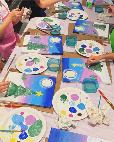 All art supplies included (canvas, paints, brushes, aprons)