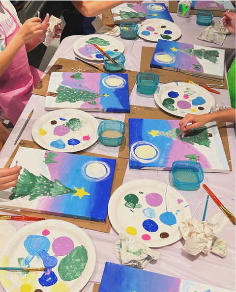 Supplies included (canvas, paints, brushes, aprons)